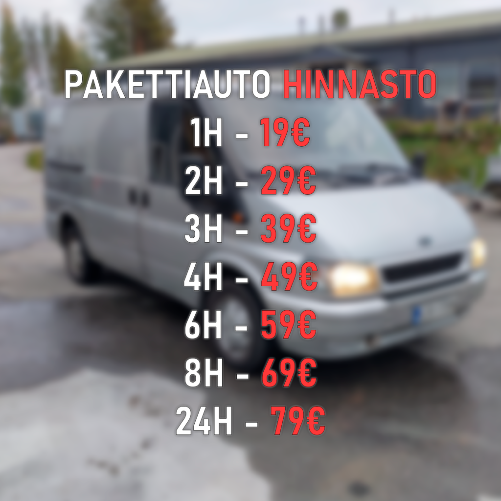 Meiltä varaat pakettiauton helposti ja edullisesti. Vuokraus sisältää vapaat kilometrit. Pakettiauton voi vuokrata varaa nyt sivulta (VUOKRAUSLINKKI – kohdasta), soittamalla 044 985 1340 arkisin ja viikonloppuisin klo 8-20 tai sähköpostitse info@kankirent.fi