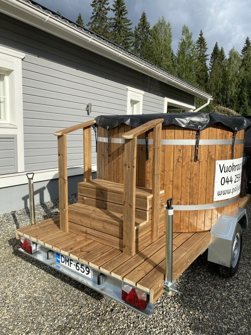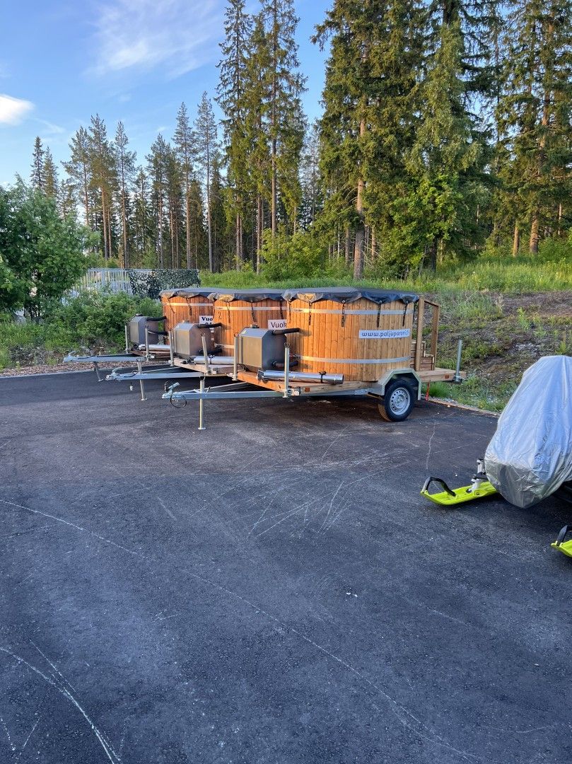 Vuokrataan paljukärry 6-8hlö! Noudettavissa kätevästi avainkoodilla omien aikataulujen mukaan. Kuljetuspalvelu myös mahdollinen. Ympärivuotiseenkäyttöön. Palju lämpenee puilla. Kärryt sijaitsevat 3km päässä Vuokatin K-supermarketilta.