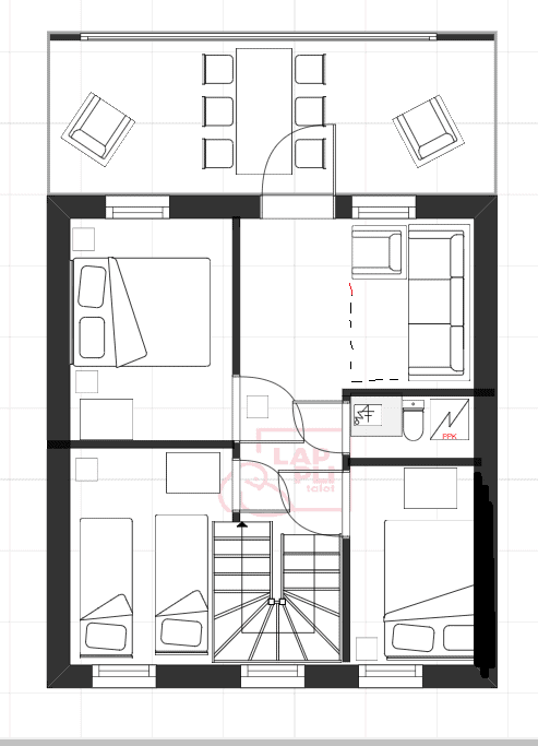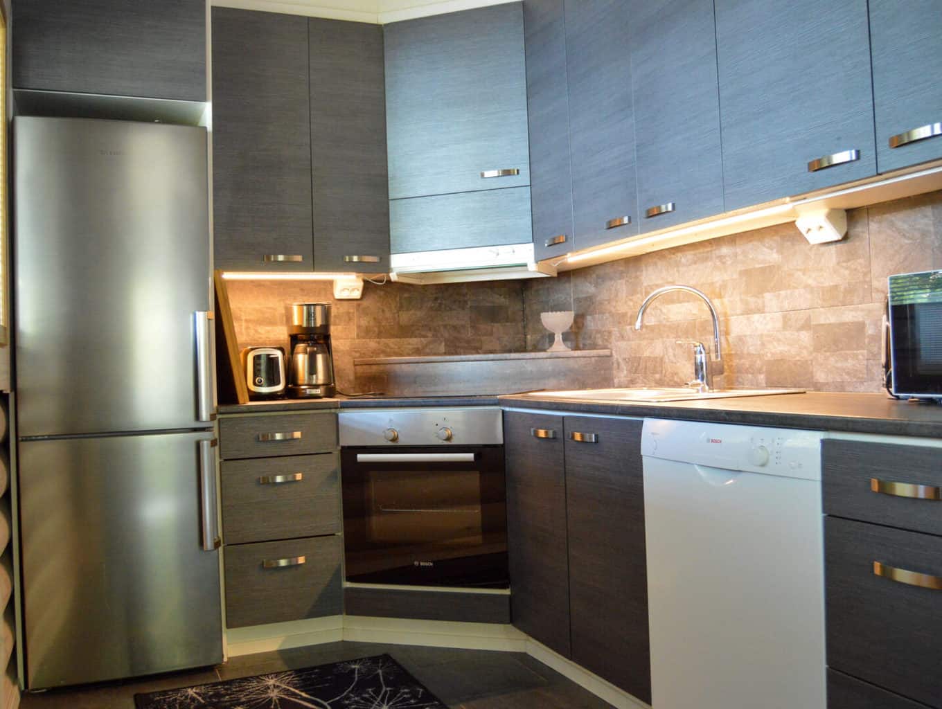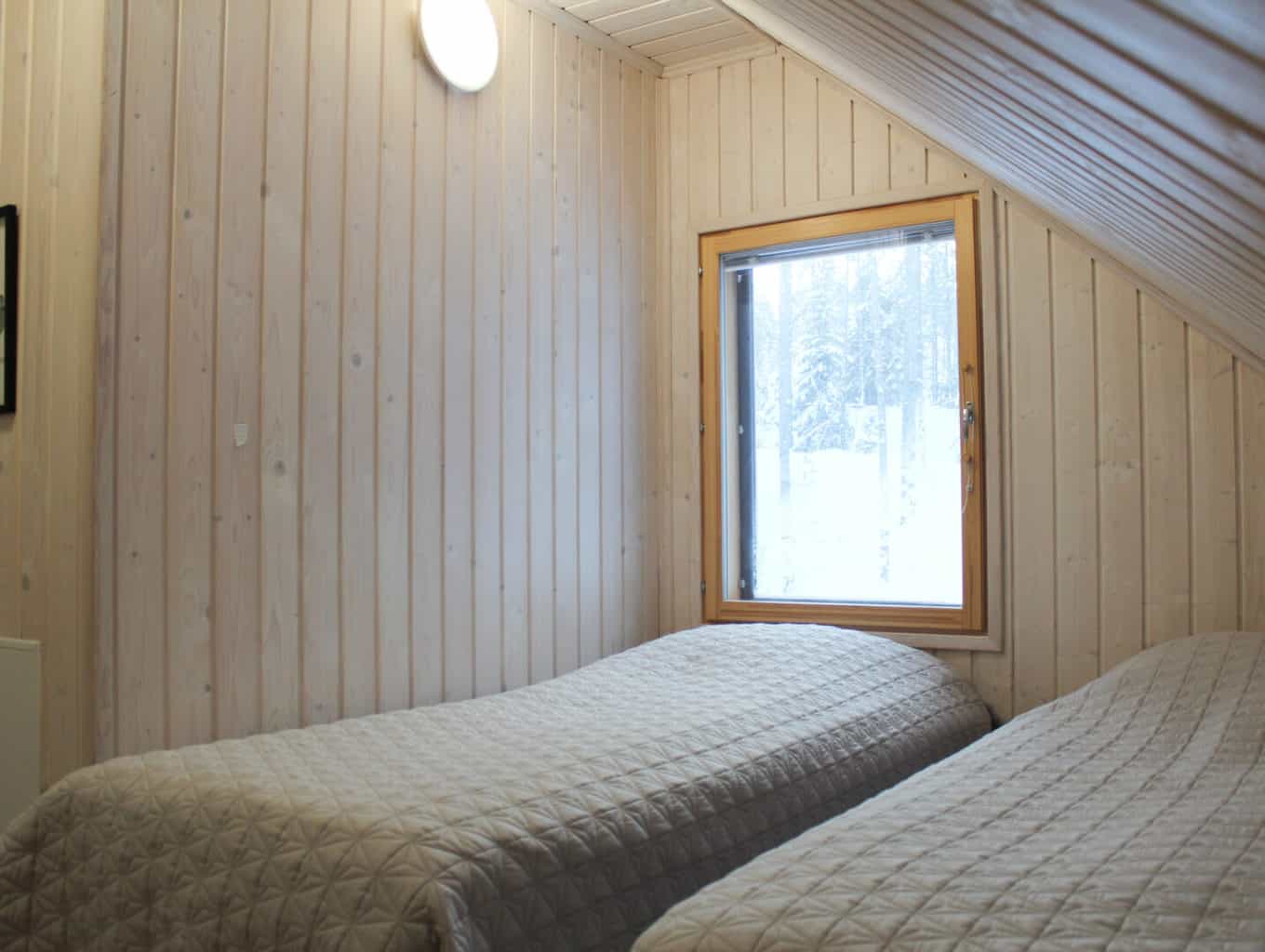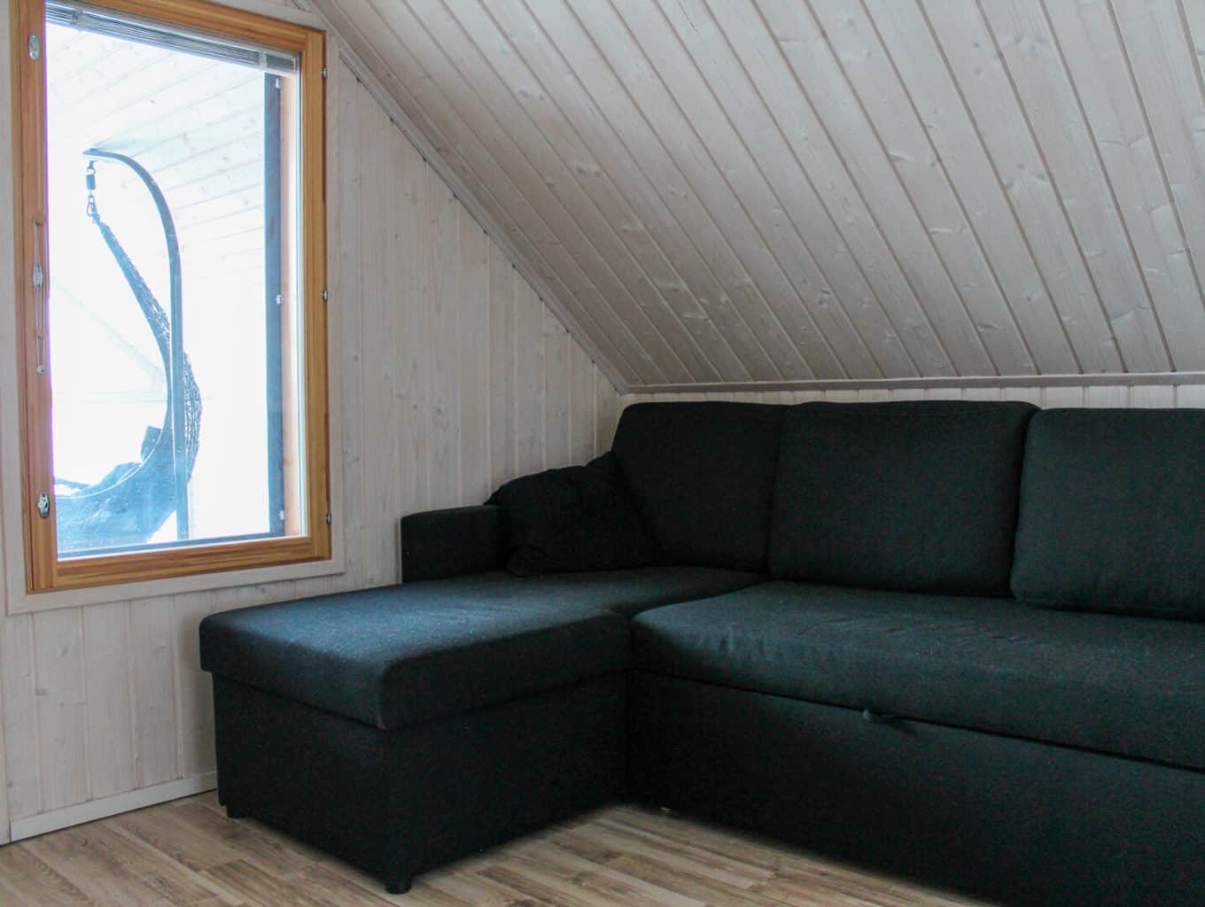 Molemmissa kerroksissa on oma wc. Alakerrassa on tilava olohuone, jossa on iso sohva, 2 televisiota (55 tuumaa), avokeittiö ja iso ruokapöytä. Samassa kerroksessa on myös puulämmitteinen sauna.