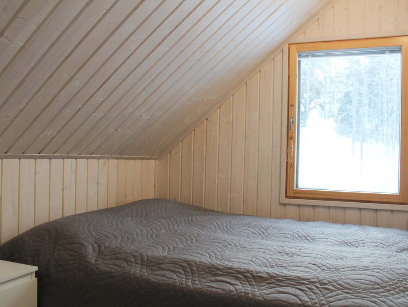 Sauna puulämmitteinen, olohuone vuode kahdelle ja terassi